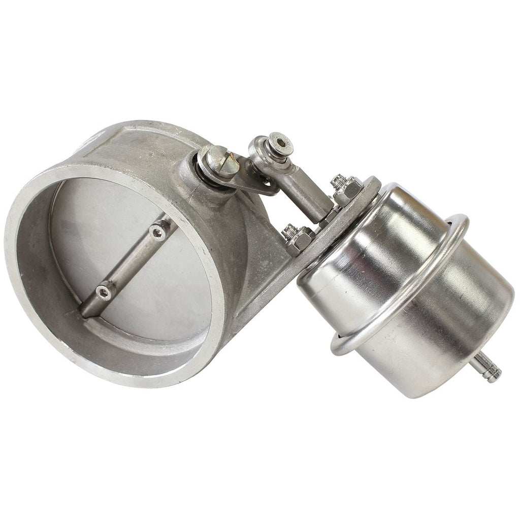Do you want the benefit of having the full noise and power of an open header at full throttle but also keepingit quiet for cruising the streets? Thanks to Aeroflow Performance the boost activated exhaust control valve (ECV) you can have the best of both worlds. No more wiring up expensive and unreliable electric exhaust cut-outs and no more climbing underneath the car to open themanual exhaust cut-outs. It's just a matter of hooking up the boost referenced vacuum line or a mac valve solenoid and you are ready to go. TheseECV is for use with turbocharged vehicles and willopen the exhaust valve when boost reaches roughly 6-7 psi.Allowing a quieter exhaust when driving around normally. The higher pressures can be obtained with either a installing a manual boost controller or a mac valve solenoid. The exhaust valve isnormally closed for all applications. Installation requires fabrication work to weld into the current exhaust system with a T-piece or Y-piece (Sold Separately).