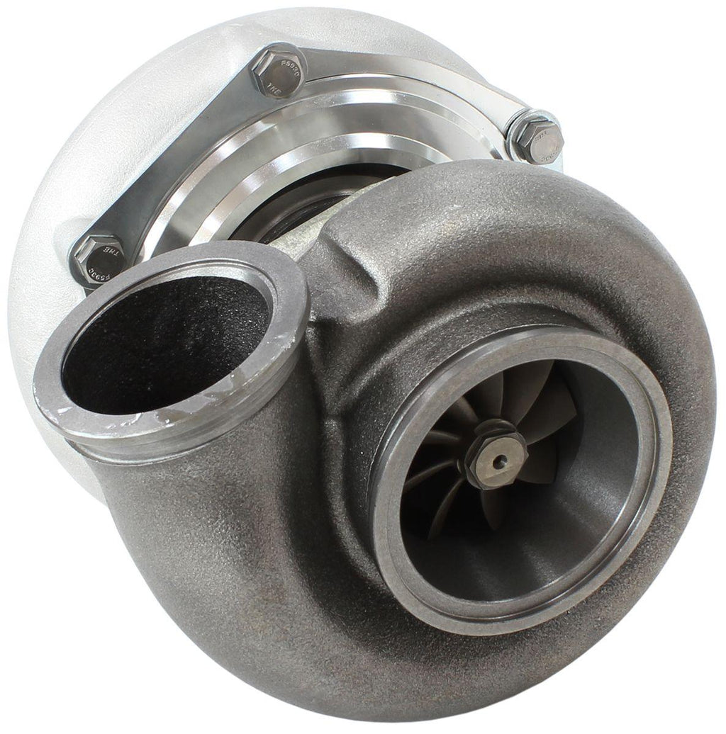 This Boosted ball bearing turbocharger from Aeroflow Performance does not feature an internal oil flow restrictor. A -4AN fitting is provided with a built in external oil feed restrictor and must be used to ensure oildoes not push past the seals and shorten the life span of the turbocharger. Should you choose not to use the provided-4AN fitting then an external oil feed restrictor (AF399-04 or AF399-03, available for purchase separately) must be installed in the turbo oil feed line at the engine side and turbo side of the line. Failure to use a suitable restrictor will void the warranty. Boosted turbochargers that feature water cooling ports must have these ports connected to the water cooling system in order to cool the turbocharger core.Failure to connect any and allof these ports will void all warranties.