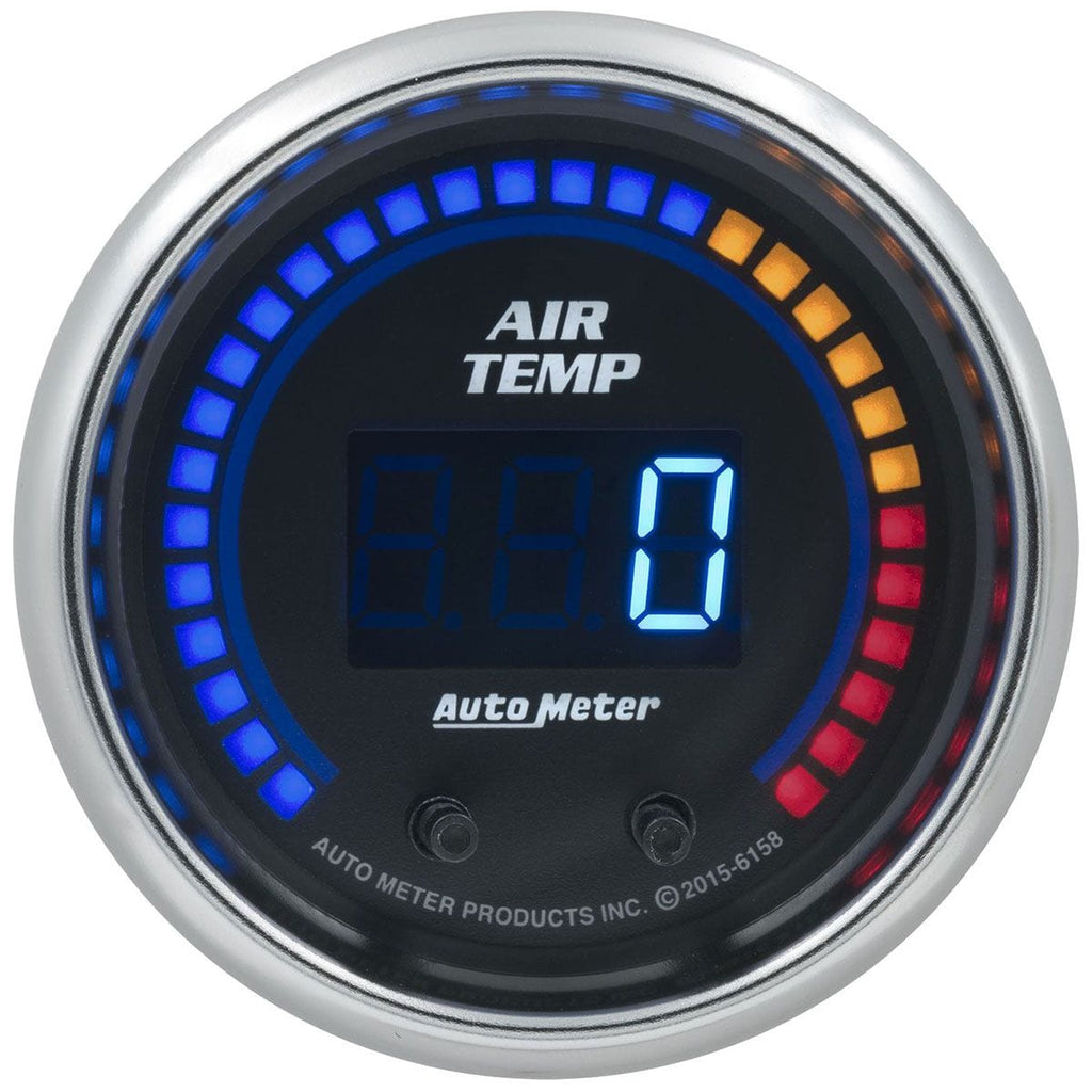 Cobalt Series Air Temrature Gauge2-1/16", Dual Channel Electrical, 100-300 °FBrand: AUTOMETERPart Number: AU6158Description: p>Monitoring the temperature of the air going into your engine is critical to safely extracting the most power fromyour engine, especially when dealing with forced induction.Cool, dense air will always make more power and contributeto less detonation. AutoMeter's dual channel air temp gauge allows you to monitor the air temp before and after the intercooler, as well as allowing you to monitor the difference in temps. This lets you see if your intercooler is up to the task and ensuring you're not causing unnecessary harm. Configurable warning set points and peak recall providecrucial feedback that allows you to keep your eyes on the road. AutoMeter's patented Pro-Control output enables youto set up the ground-controlled output to control intercooler sprayers or other devices.