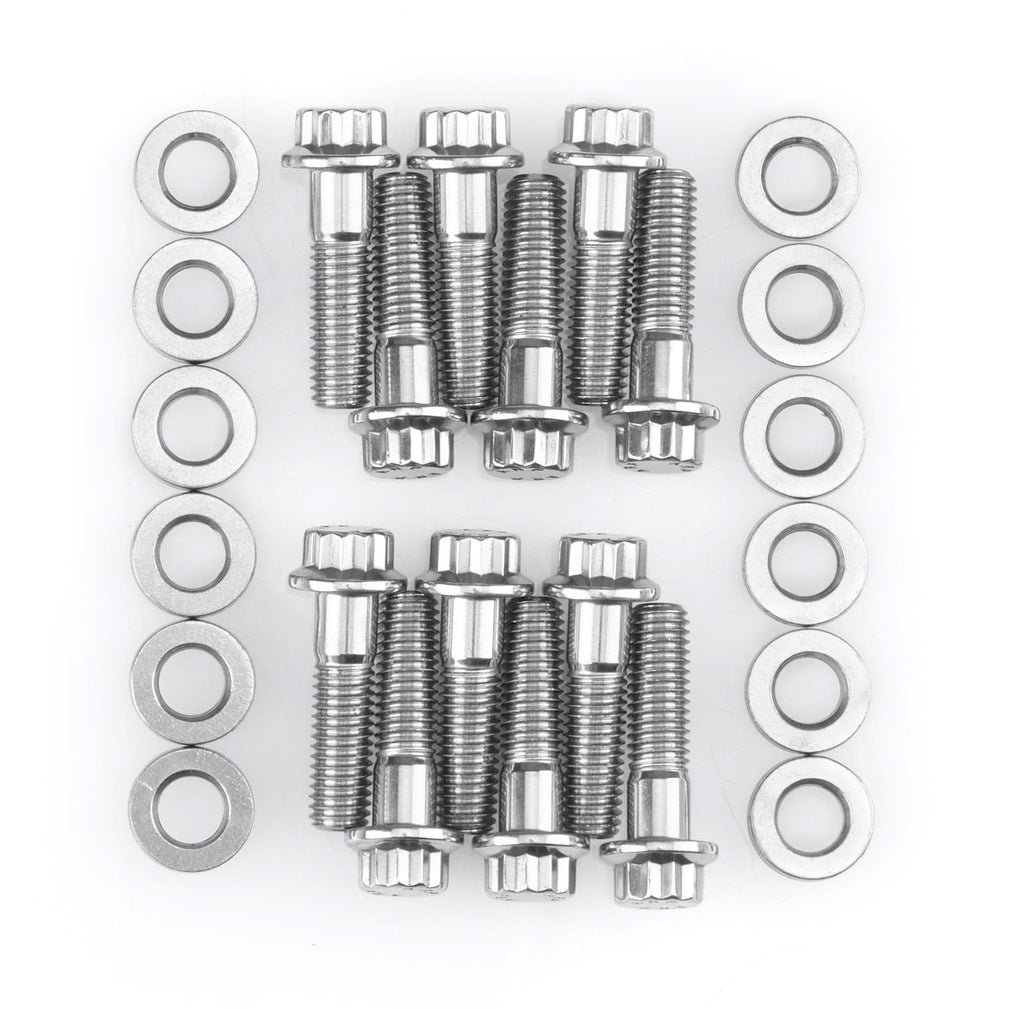 ARP SBC/GENIII LS 3/8 flange SS 12pt header bolt kit (434-1202) ARP Stainless Steel Header Bolts 434-1202 ARP stainless steel header bolts are 15 percent stronger than Grade 8 steel. These bolts have a compact head that will allow a socket to fit into those tight, tricky spaces next to the headers. These bolts are both highly corrosion-resistant and heat-resistant. They have a polished finish and come in 12-point and hex-style heads.Brand: ARP Manufacturer's Part Number: 434-1202 Part Type: Header Fasteners Product Line: ARP Stainless Steel Header Bolts Stealth Ride Part Number: ARP-434-1202 UPC: 672036041915 Fastener Style: Bolt Thread Size: M8 x 1.25 Head Style: 12-point Underhead Length (in.): 1.181 in. Underhead Length (mm): 30.00mm Fastener Material: Stainless steel Fastener Color: Polished Fastener Tensile Strength (psi): 170,000 psi Quantity: Sold as a set of 12. Special Attention: Anti-seize should be used on all stainless steel fasteners.