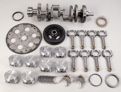 Notes: Assembly includes file to fit piston rings, pistons for stock valve reliefs, harmonic balancer, and 157 tooth flywheel for manual transmission. Suitable for up to 500 horsepower.
