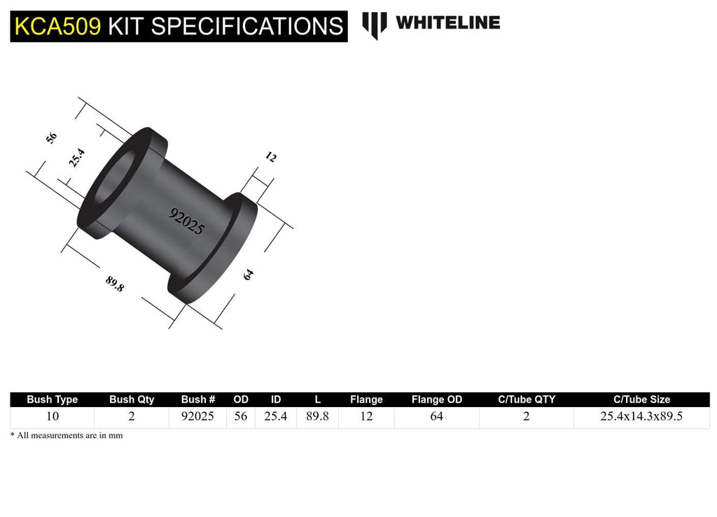Front Control Arm Lower - Inner Rear Bushing Double Offset Kit to Suit Toyota HiLux, Prado, 4Runner and Foton Tunland