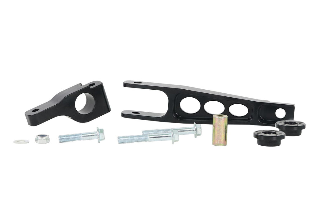 The torque arm assists in controlling the engine and drivetrain forward and aft twisting motion. The torque arm is inherently soft due to the high compliance rubber bushing design and was built for comfort and not responsiveness or feel. Whiteline's torque arm mount bushing is built to handle the demands of high torque and power output engines by limiting the amount of movement the engine and drivetrain will place upon the pitch stop. Utilising low compliance bushing technology this eliminates the slop, twisting and shudder found in the OEM rubber bushings allowing for a faster, positive, responsive feel of power delivery on and off the throttle. The torque arm assists in controlling the engine and drivetrain forward and aft twisting motion. The torque arm is inherently soft due to the high compliance rubber bushing design and was built for comfort and not responsiveness or feel. Whiteline's torque arm mount bushing is built to handle the demands of high torque and power output engines by limiting the amount of movement the engine and drivetrain will place upon the pitch stop. Utilising low compliance bushing technology this eliminates the slop, twisting and shudder found in the OEM rubber bushings allowing for a faster, positive, responsive feel of power delivery on and off the throttle. *All prices shown on the Whiteline website include GST. You will not be charged any additional fees related to tax.