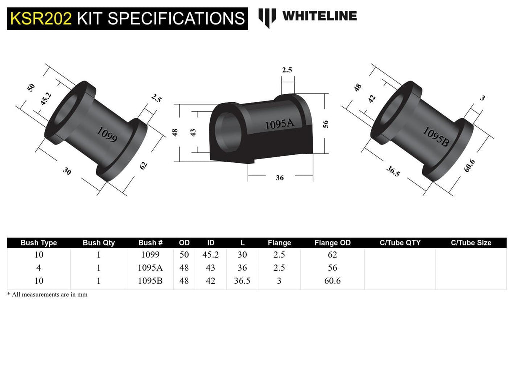 Front Steering Rack and Pinion - Mount Bushing Kit to Suit Subaru Forester, Impreza, Liberty and Outback