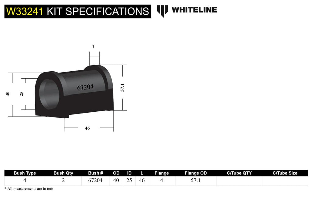 Front Sway Bar Mount - Bushing Kit 25.4mm to Suit Mitsubishi Challenger PB, PC and Triton ML, MN