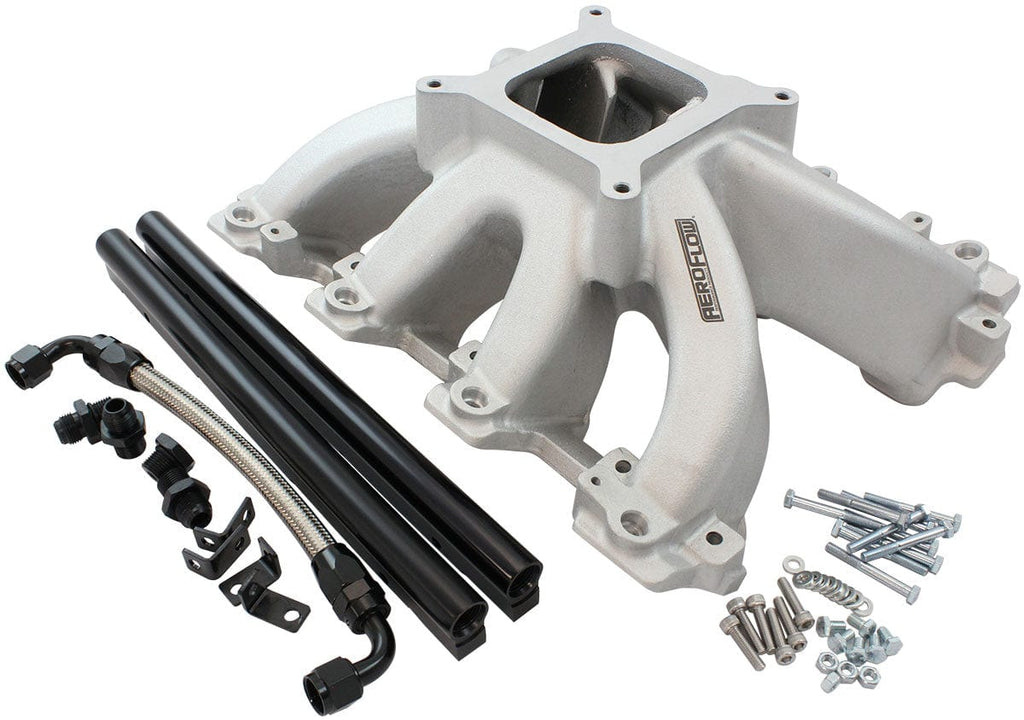 Aeroflow GM LS Cathedral Port Carburettor Hi Rise Race Single Plane EFI Intake Manifold, Natural Cast Finish