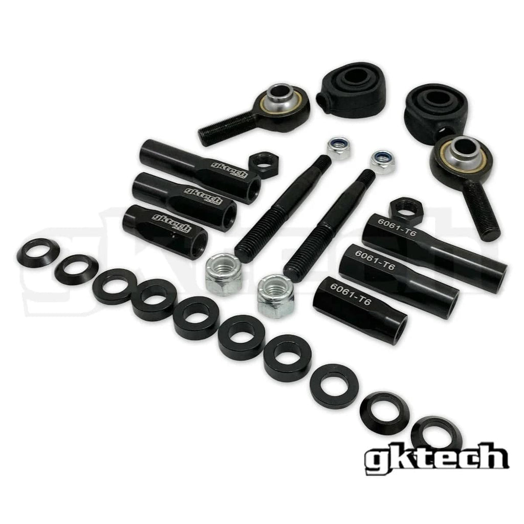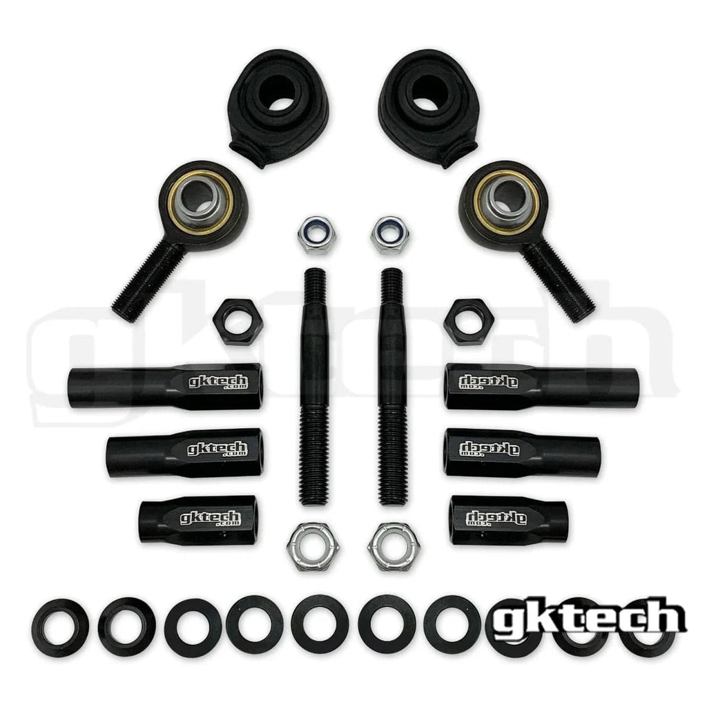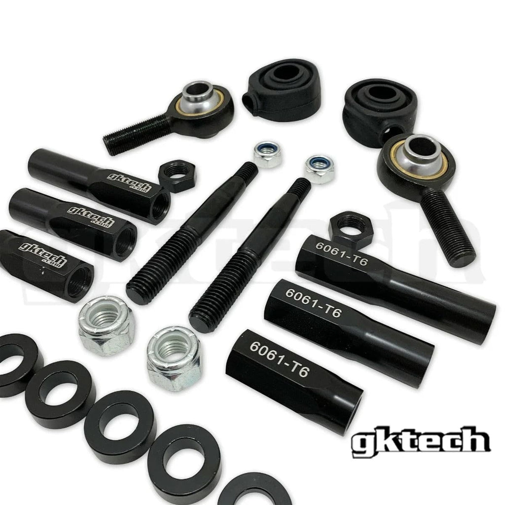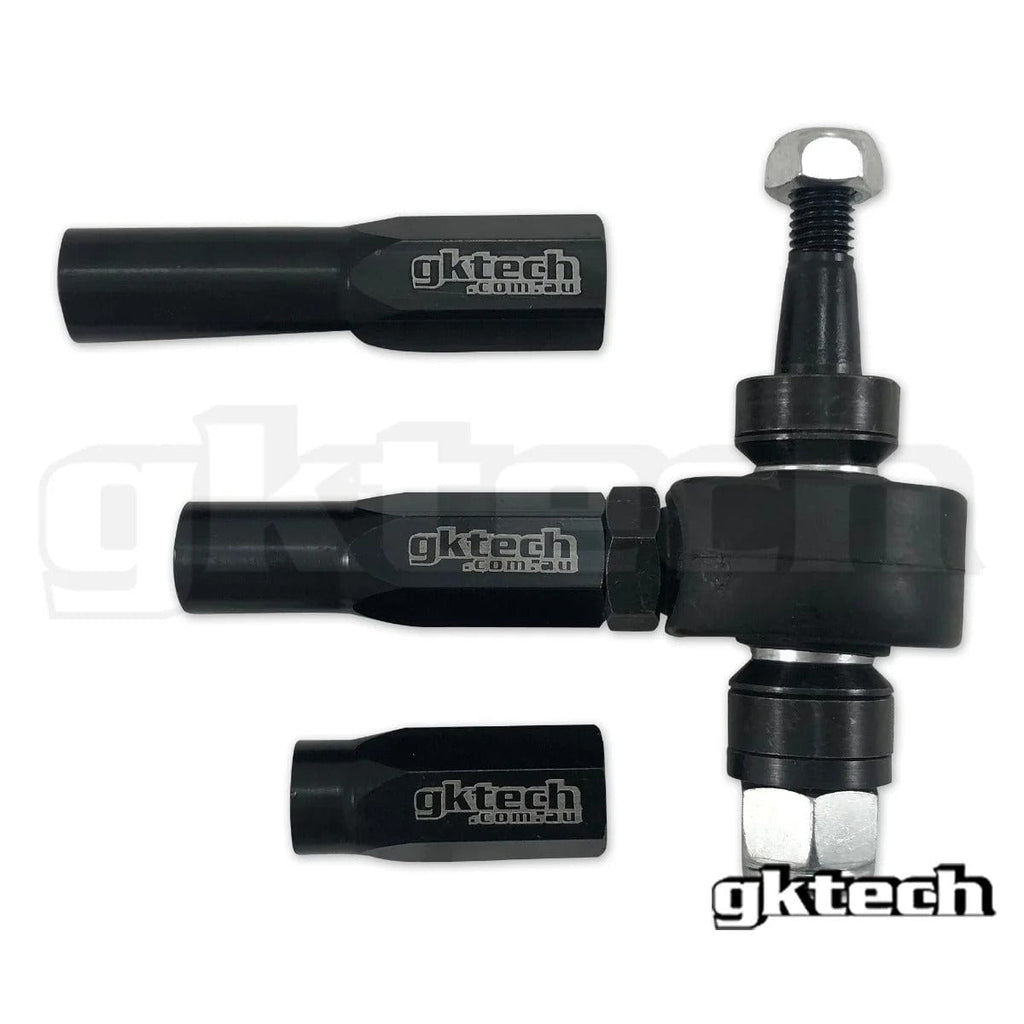 The GKTECH high misalignment outer tie rods have 64 degrees of misalignment, 0.98" (25mm) of bump steer correction built-in and come with 3 different length shanks (to suit those with longer LCA's or aftermarket knuckles).
