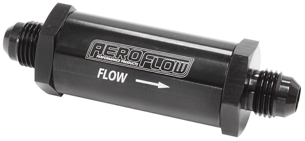 Long Inline Fuel & Oil Filter -3AN Black Finish. Includes 30 Micron Element, 3" Long, 1" O.D