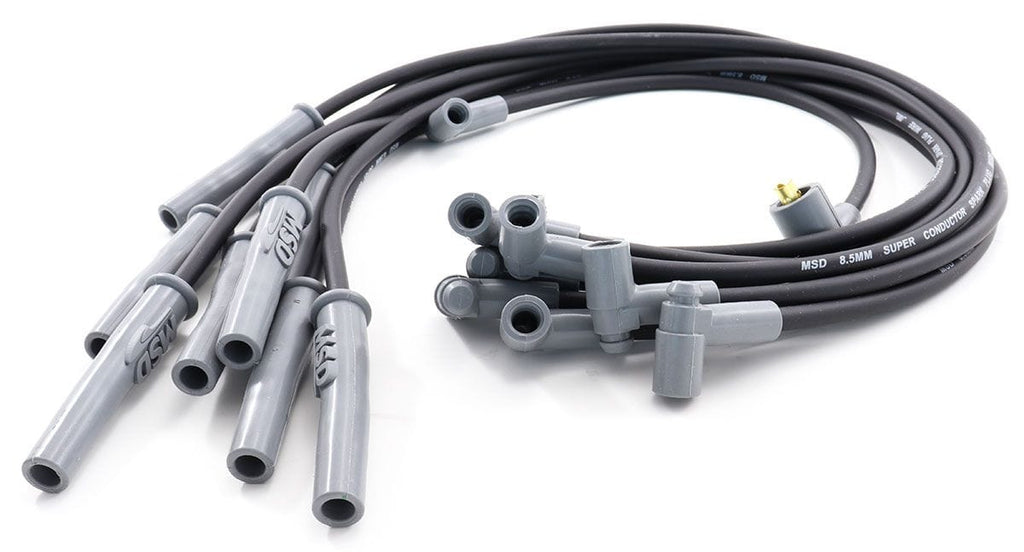 The MSD 8.5mm Super Conductor is the ultimate performance wire! Its extremely low-resistance combined with the ability to suppress Electro Magnetic Interference is a combination that defies the common laws of physics. Less resistance means more energy is going to make it to the spark plug to ignite the air/fuel mixture. The Super Conductor uses a copper alloy conductor resulting in less than 50 ohms per foot of wire! This ensures that t he most energy it to the spark plug. This combination is encased in a heavy duty sleeve that will withstand abrasion and high temperatures. Cap off each end with our Dual Crimp Terminals and you have the best wire available!