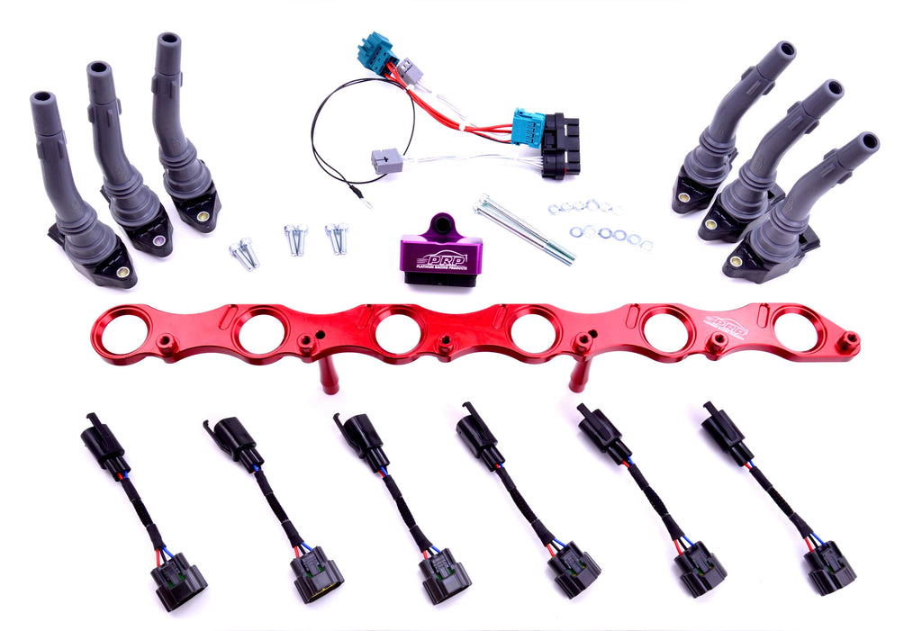 - OEM ‘Plug & Play’ wiring which utilizes your factory ignition wiring aimed at use with flashed factory DME computers. It includes 6 braided patch leads that convert the factory coil connector to an R35 coil connector with the use of our very own custom injection moulded connector. It also includes a bypass box to sit in the DME enclosure and convert the signal.