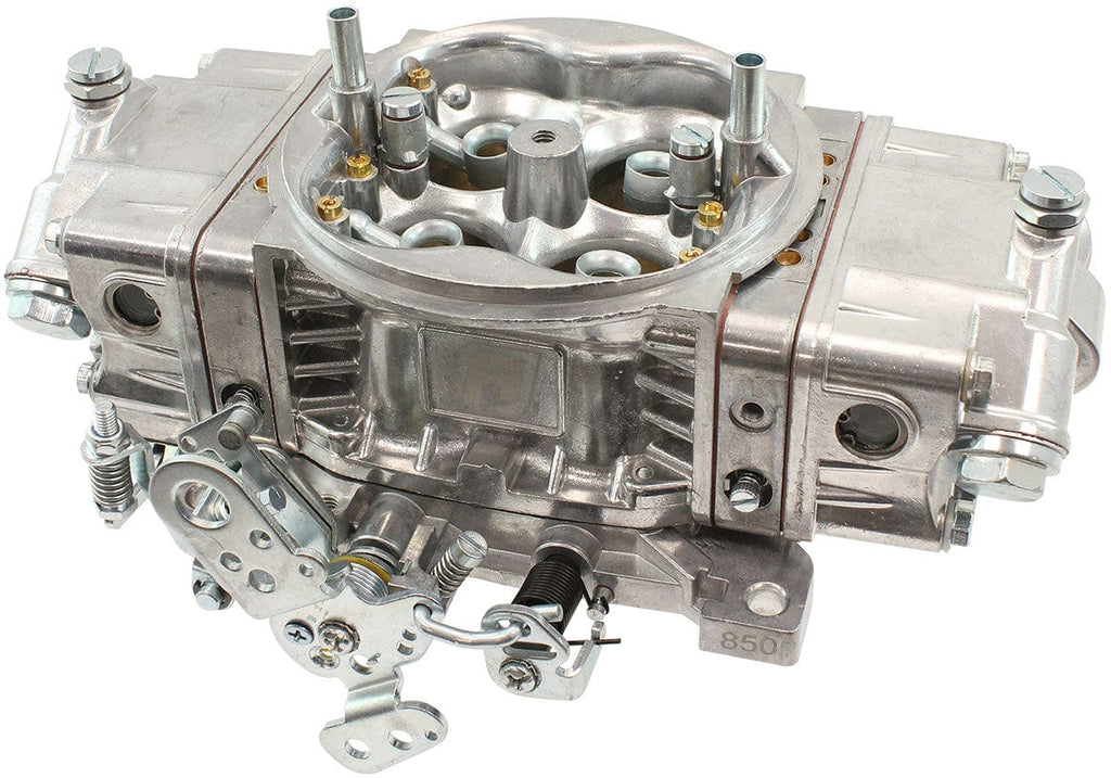 Aeroflow 850cfm 4-Barrel Double Pumper Carburettor with Mechanical SecondariesSquare bore 4150 Flange, No Choke, Silver Finish