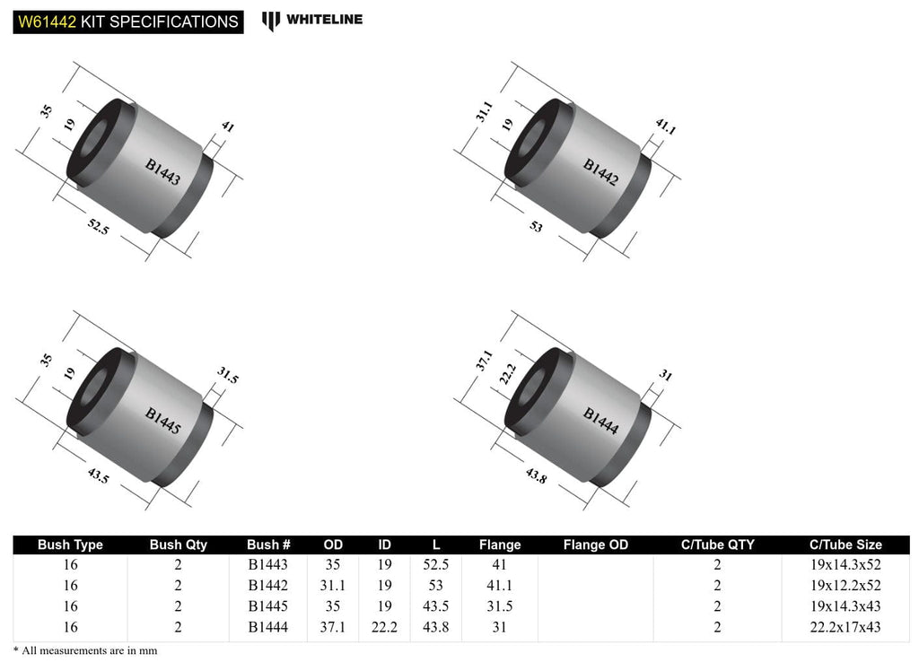 Rear Control Arm Lower - Bushing Kit to Suit Toyota Camry and Holden Apollo