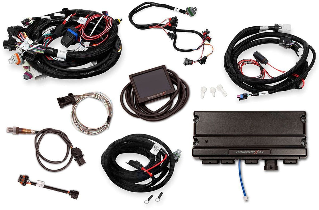 - Includes: 24x LS Engine Main Harness - EV1 Injector Harness - 4L60E/4L80E Transmission Control Harness - Terminator XMAX ECU - ECU Main Power Harness - Bosch LSU 4.9 Wideband Oxygen Sensor - Input/Output Harness - and assorted vacuum adapters