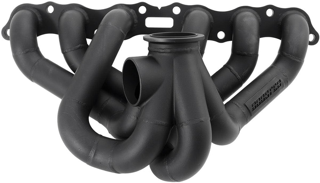 Aeroflow Performance steampipe turbo manifolds are a series of pipes that collect exiting exhaust gases which can be channeled into our merge collector which are perfectly matched to our Boosted range of turbochargers. Our merge collector design allows all pipes to enter at the exact same angle, and merge togetherat a point in the middle, pointing straight into the turbine. No pipes enter acrosseach other, so airflow is not disrupted, meaning a perfect balance between boost control and flow. With minimal back pressure where the manifold meets the turbo, you can be sure that you're getting the best flow possible from our turbo manifold.