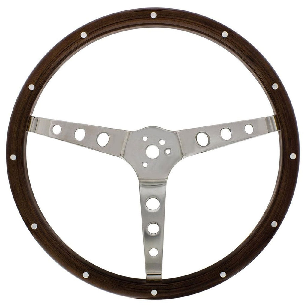 UPI Reproductions 15" Woodgrain Steering Wheel 3-Bolt 4" Dish, 304 Stainless UP110794